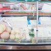 Vetrina di salumi e formaggi assortiti in un negozio.