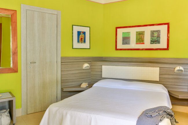 Dal design armonioso e colorato, nella zona del villaggio più vicina al mare è un monolocale in muratura composto da: soggiorno con letto matrimoniale e angolo cottura attrezzato, bagno con doccia, aria condizionata, TV. Biancheria da letto e a bagno inclusa. Veranda arredata con tavolo e sedie.