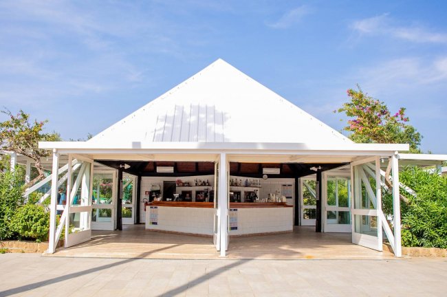 due camere matrimoniali vicine, non comunicanti, ognuna con servizi privati. Questa opzione prevede inoltre due ombrelloni vicini in spiaggia con un totale di quattro lettini.
