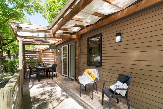 - MOBILE HOME TRILOCALI fino a 5 posti letto, da 37 mq fino a 67 mq con veranda esterna, zona giorno con angolo cottura, 2 camere, 1 bagno con doccia. Alcuni sono dotati di un 2° bagno, in particolare la tipologia GIGLIO dispone della jacuzzi in veranda.