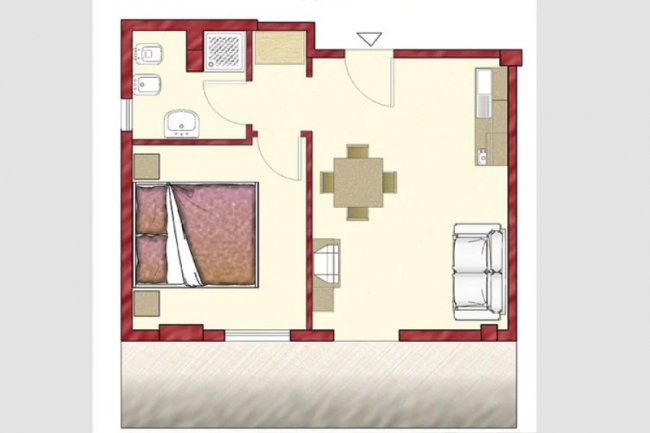 Pianta di un appartamento con una camera.